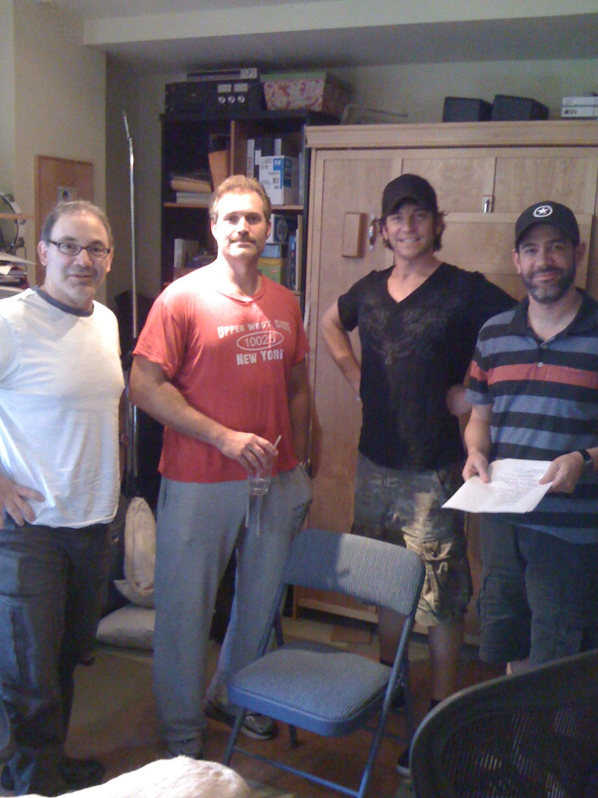 We are almost finished recording the cast in our studio. Thought I would share a few pictures that we took with Marc Kudisch, Andy Karl, Michael Marcotte & Lisa Howard. We record our singers in the room known as our bedroom, usually with a lab or two on the bed watching. (Sometimes snoring - it’s not unusual for a singer to stop a take and say: ‘… um, your dog is snoring”).